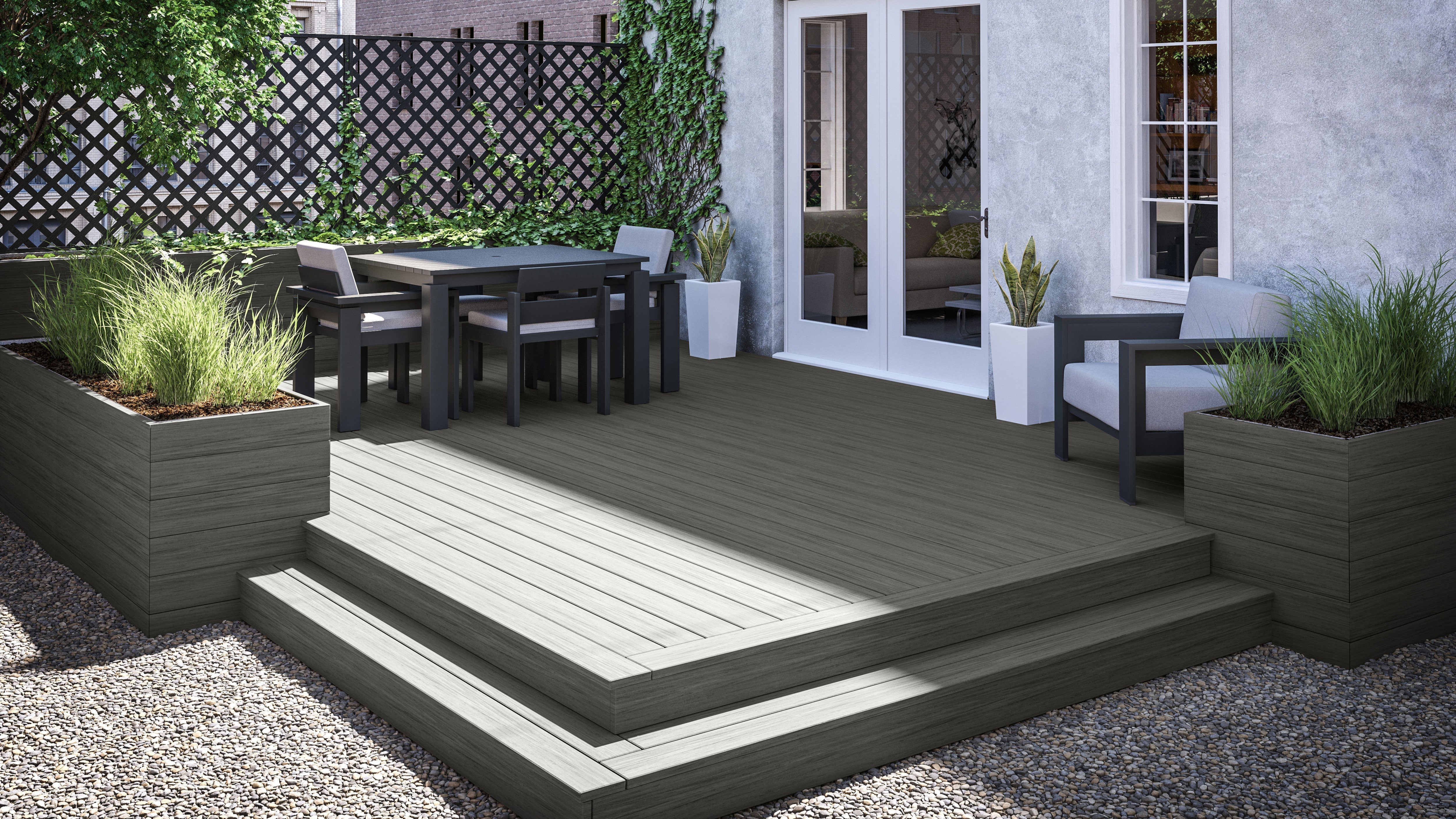 Deckorators® Excursion Terrassendielen mit innovativer Surestone® - Technologie bieten eine leichte und sichere Möglichkeit zur Verschönerung Ihres Außenbereichs. Diese Terrassendielen aus mineralischem Verbundwerkstoff sind in einer Vielzahl von Farben erhältlich und passen sich so unterschiedlichen Designvorlieben an. Sie eignen sich ideal für erhöhte Terrassen, ebenerdige Veranden und sogar Anlegestellen.